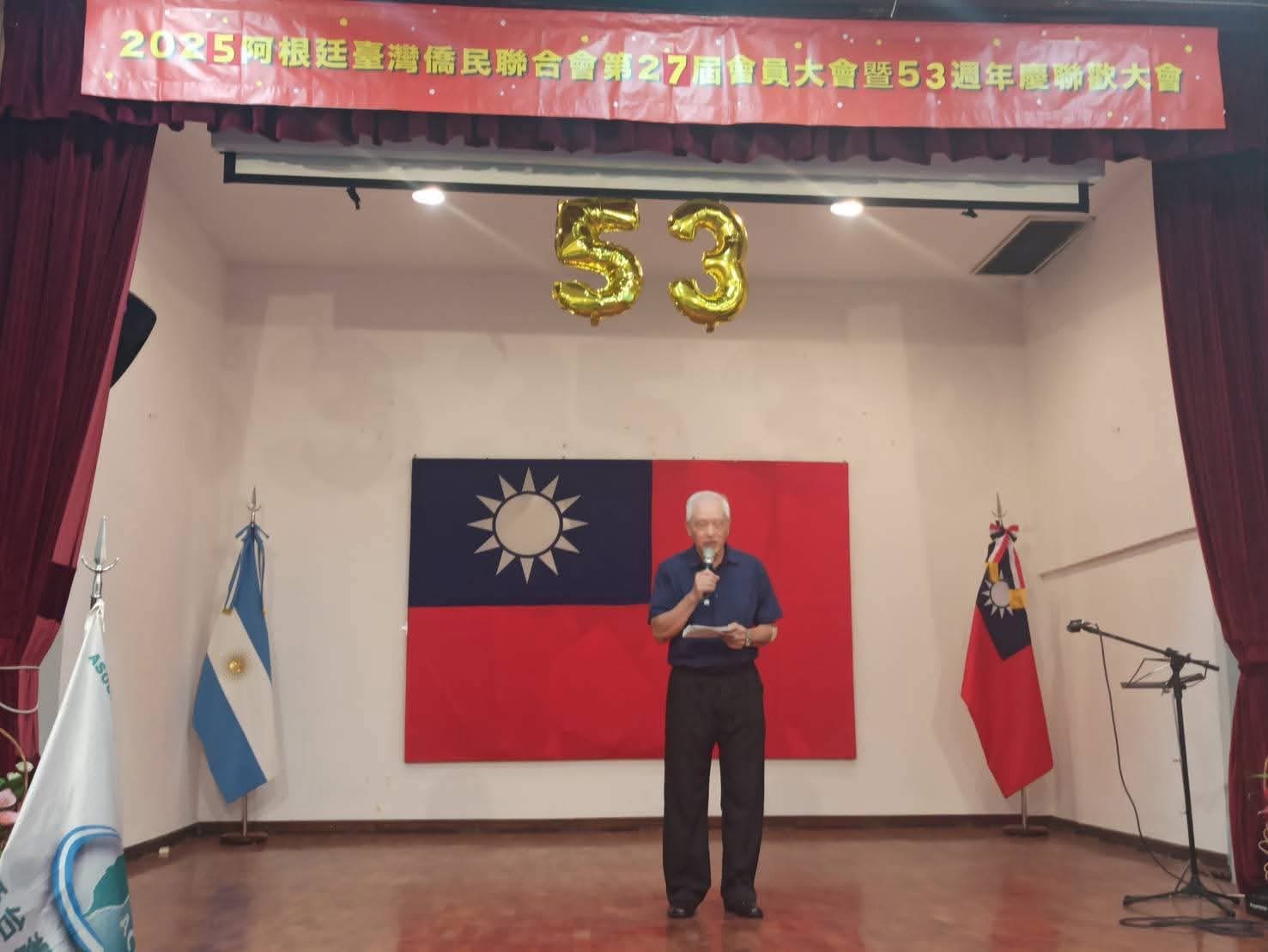 阿根廷台灣僑民聯合會於本(114)年12月14日舉辦「第27屆會員大會暨成立53週年慶聯歡會」,本處謝大使妙宏偕同仁應邀出席,並頒贈114年雙十國慶活動有功團體及個人感謝狀,以表彰僑界長期支持政府各項重要活動之貢獻。
