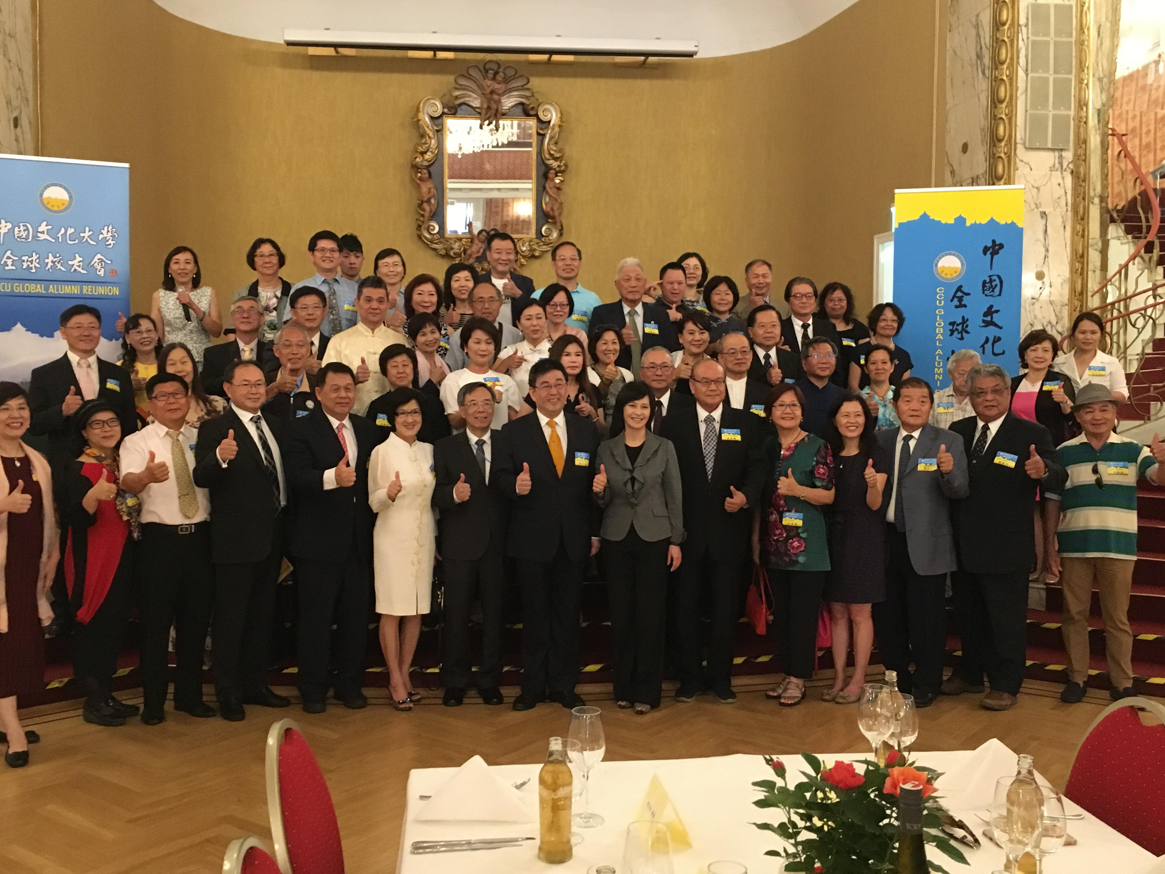 本年度年會輪值由歐洲校友會聯合會假維也納美泉宮奧地利時尚公園飯店舉行,計有來自全球70餘位代表與會,除李校長外,尚有該校任教師長:周健副教授、周玉副教授、馬樹秀教授、潘世偉副教授、王愛末副教授;校友總會:林柏杉秘書長、李復甸召集人;外交界華岡校友聯誼會高崇雲先生、泰國校友會林耀堂會長、法國校友會蔡國泰會長、希臘台商會張步仁會長、歐洲台商會吳輝舟名譽總會長、奧地利張春娟僑務委員、全德台灣商會劉淑慧總會長、歐洲校友會聯合會陳亮吟、黃翠娟、林淑卿、鍾玉英等;美東校友會蕭慧卿理事、上海校友會莊震霆會長、留日華崗校友會黃美華、北美校友會聯合會秦力勝會長、謝傳佐前會長;南加州校友會顧紫妍會長、台北校友會陳碧涵顧問、桃園校友會吳正群會長、宜蘭校友會蔡明哲前會長、台東校友會林永發創會會長、台中校友會林采霖會長、台南校友會蒲宣成會長、魏燦文創會會長;國劇系系友會劉世範會長、化學系系友會游錫榕總幹事、地理系系友會易榮昌會長、華岡海洋同學會謝燦榮等。
