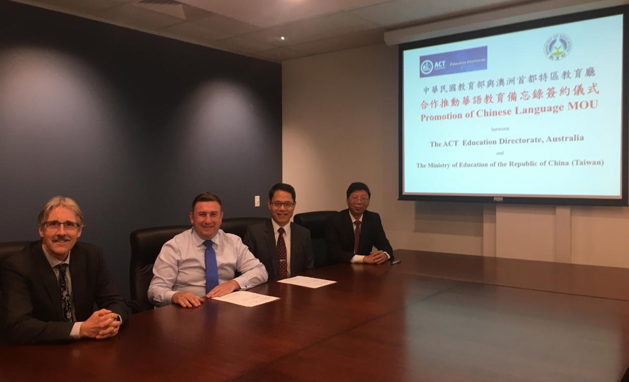 為促進臺澳雙向教育交流,教育部國際及兩岸教育司與澳洲首都特區教育廳簽署華語教育合作備忘錄。雙方於2019年1月29日分別由駐澳大利亞代表處教育組陳郁仁組長,以及澳洲首都特區教育廳教學處Jason Borton處長代表共同簽署,我方則由駐澳大利亞代表處賴維中公使擔任簽約儀式的見證人。