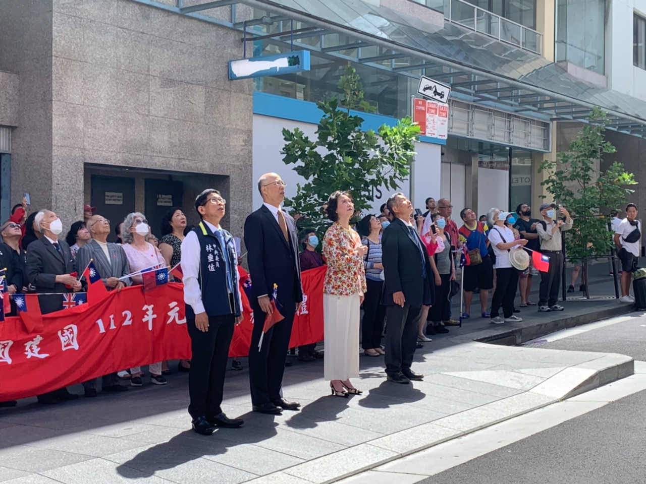 隨後雪梨僑界慶祝中華民國112年元旦升旗典禮拉開序幕,隨著中華民國與澳洲國歌響起,僑胞們手持兩國國旗齊聲合唱,情緒也隨國旗冉冉上升逐漸沸騰感動,歡喜迎接2023年。