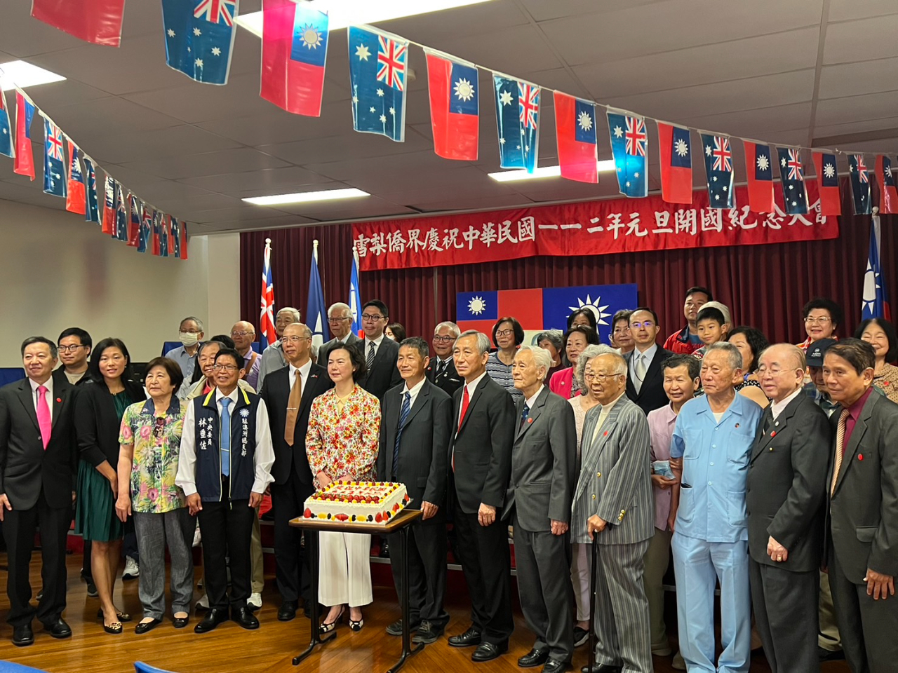 出席貴賓與僑胞合影後分享元旦慶祝蛋糕,互道新年快樂、吉祥如意,活動圓滿順利。