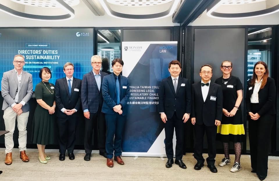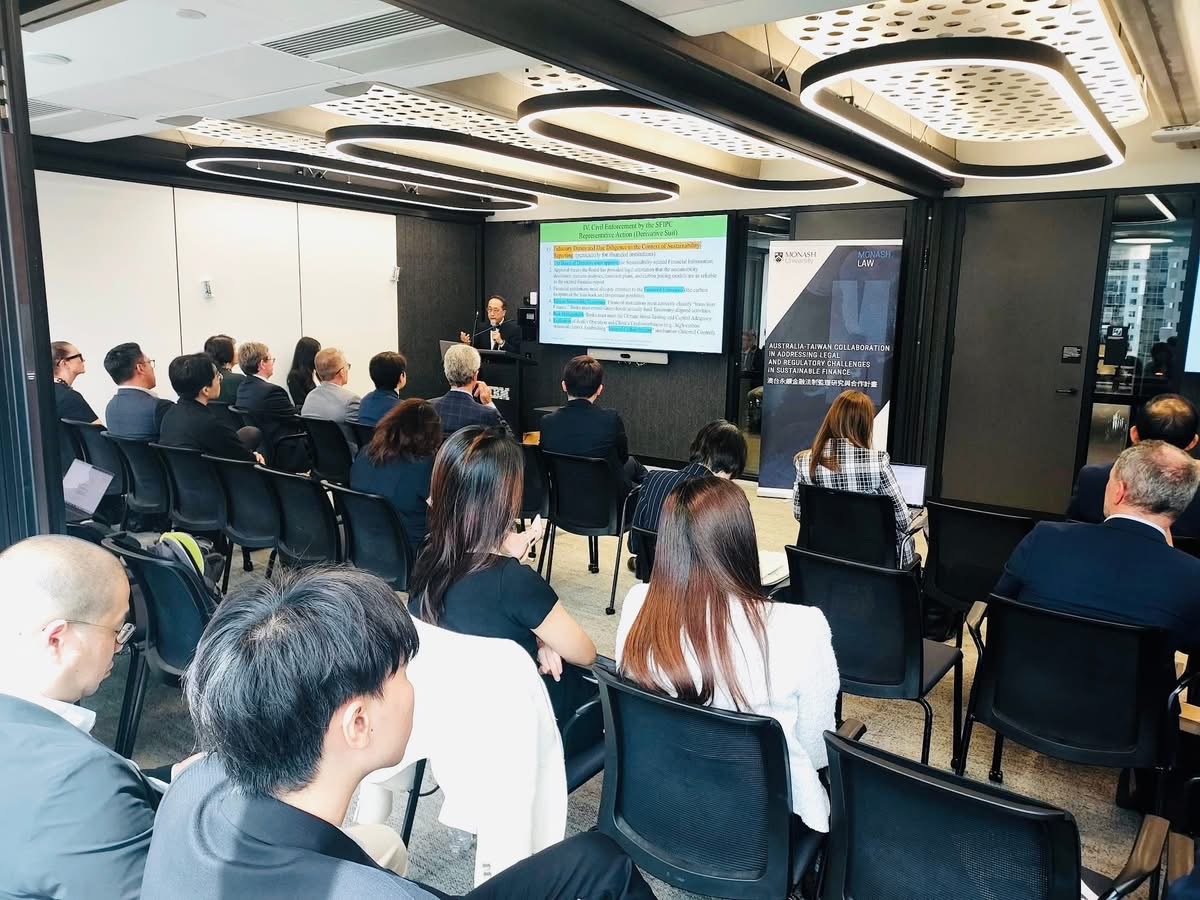 Director General David Cheng-Wei Wu, accompanied by Economic Division Director Hsiao Fu-ku, attended the Australia–Taiwan Sustainable Finance Workshop (Sydney) held at IBM Australia, joining experts from academia and the financial sector in discussions on directors’ duties and sustainability governance.