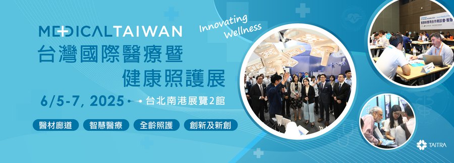 中華民國對外貿易發展協會 TAITRA將舉辦台灣國際醫療暨健康照護展(Medical Taiwan),以Innovating Wellness 為策展核心,在「智慧醫療」、「全齡照護」、「醫材廊道」以及「創新及新創」四大主題架構下,聚焦「大健康產業」,呈現醫療及健康領域不斷創新的成果,提供全生命週期的醫療及健康照護解決方案。