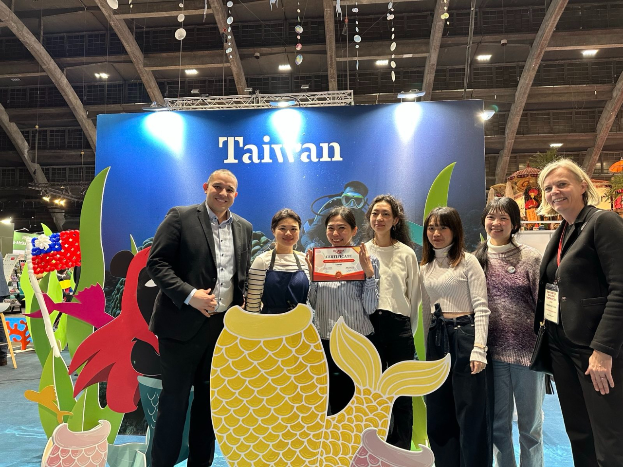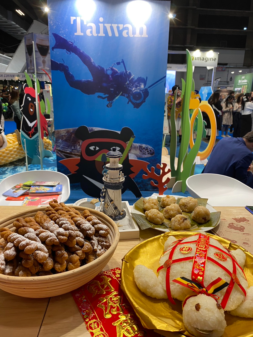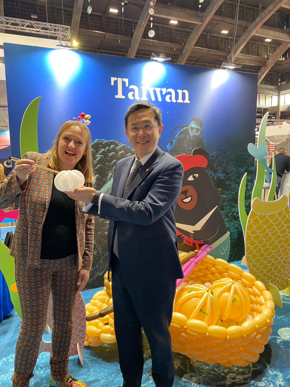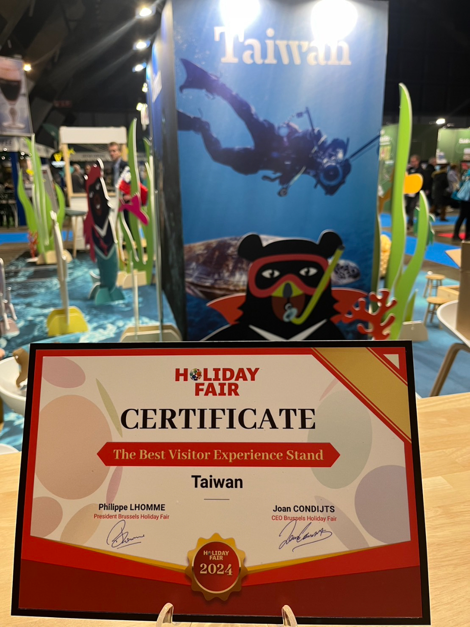 2024年布魯塞爾國際觀光旅展於2月1日至4日在Brussels Expo熱鬧登場,今年台灣館以「蜜月台灣」為主題,並結合「台灣海洋世界」概念設計展場,搭配「喔熊」美人魚、潛水「喔熊」及巨型鑽戒拍照區,讓民眾可以合影打卡。展場亦用小卷、珊瑚、海草、小琉球海龜等裝飾點綴,展現台灣海底豐富多樣的自然生態。