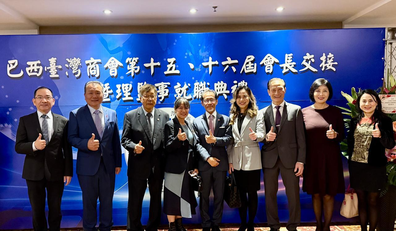 廖代表應邀致詞時肯定巴西台商會舉辦多種經貿及公益慈善活動,團結僑社,凝聚僑胞向心力,融入巴西主流社會並增加台灣能見度,見證台灣軟實力。廖代表並轉致僑委會徐委員長佳青感謝函肯定蔡逢興會長擔任2屆共4年任期帶領會務發展,以及委員長賀函恭喜葉倫群榮任會長,期盼引領新局再創新猷。活動進行至晚間10時,圓滿成功。