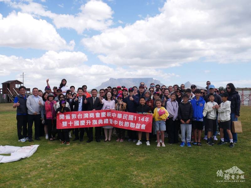 大開普敦地區僑界本年度最後一場國慶活動,於10月26日由開普敦臺灣商會主辦升旗典禮暨歡慶中秋活動。包括駐開普敦辦事處處長陳瑩莉、秘書蔡亦欣、僑務秘書曾權榮以及多位僑務榮譽職人員、僑團負責人,共計近百位僑民不畏強風踴躍參加。