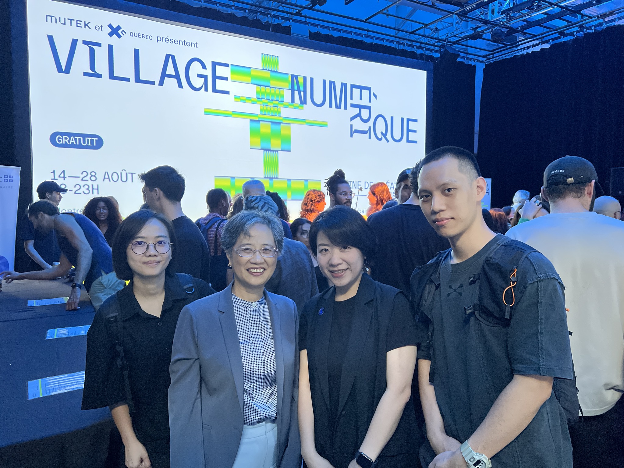 L’équipe d’art numérique taïwanaise “Dimension Plus” expose son oeuvre “VS AI Street Battle “ dans le parcours urbain du Village Numérique présenté par MUTEK Montréal et Xn Québec du 14 au 28 août. La Directrice générale Chen était ravie de rencontrer l’équipe taiwanaise à l’ouverture de l’exposition.
