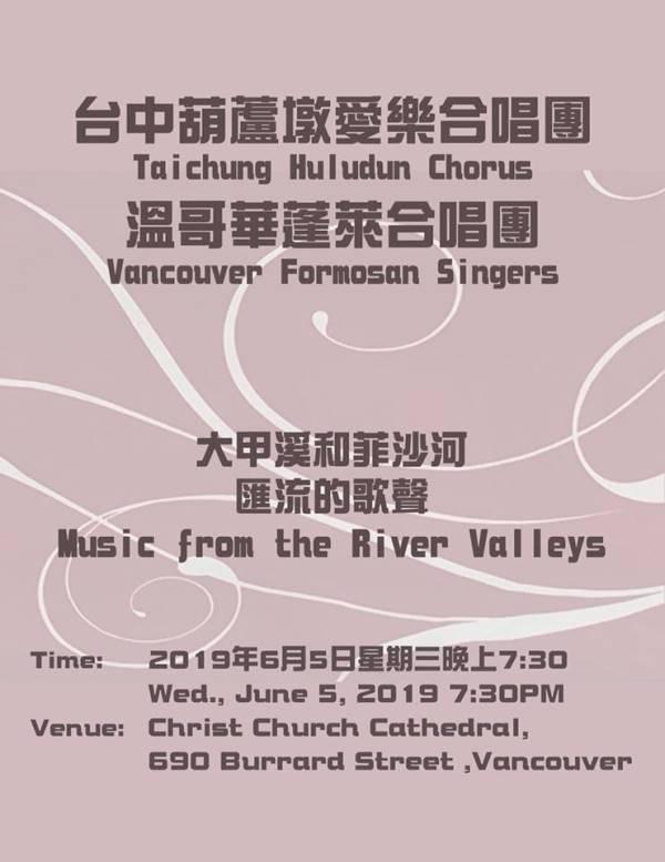 時間:2019年6月5日 (星期三) 下午7時30分 地點:Christ Church Cathedral (690 Burrard Street, Vancouver) 索票電話:604-266-8505 郭豐團長 (音樂會門票免費,憑票入場)
