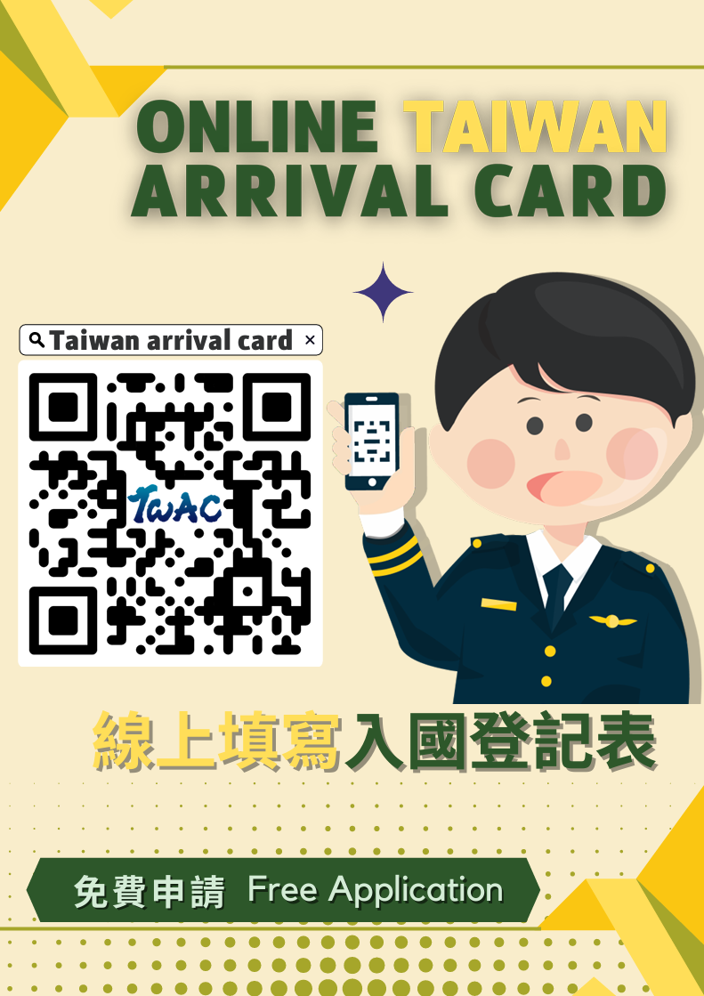 自今(114)年10月1日起,臺灣將正式推行網路填寫入國登記表(TAIWAN ARRIVAL CARD,簡稱TWAC)。TWAC是「免付費」採線上填報,外來旅客於抵達臺灣前三天內,可至移民署TWAC官方網站(https://twac.immigration.gov.tw)完成申請,資料填寫完成後,系統會自動發送申報成功憑證至旅客留存的電子信箱,當旅客入境通關時,無需向查驗人員出示申報憑證,查驗人員讀取護照後,系統會自動帶出其A卡的填寫資料,便捷又省時。