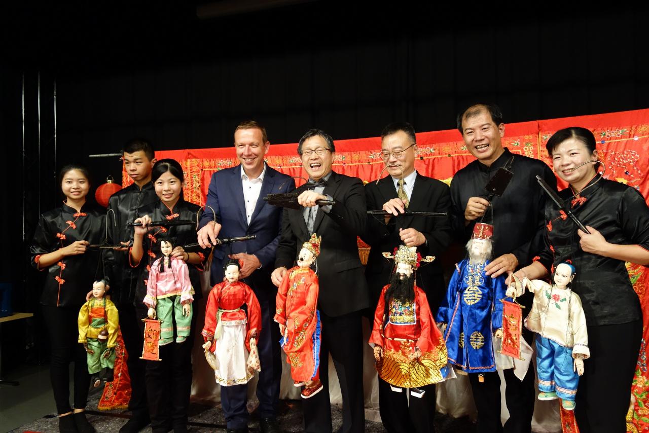 德國易北.埃爾斯特縣第20屆國際偶戲節於107年9月14日至9月23日登場,來自臺灣高雄錦飛鳳傀儡戲劇團擔綱演出9月14日開幕首演節目,現場250個座位座無虛席,為歷來開幕首演僅見。臺灣駐德國謝志偉大使偕同文化組同仁特地驅車前往,向團隊加油打氣,推廣臺灣偶戲文化。