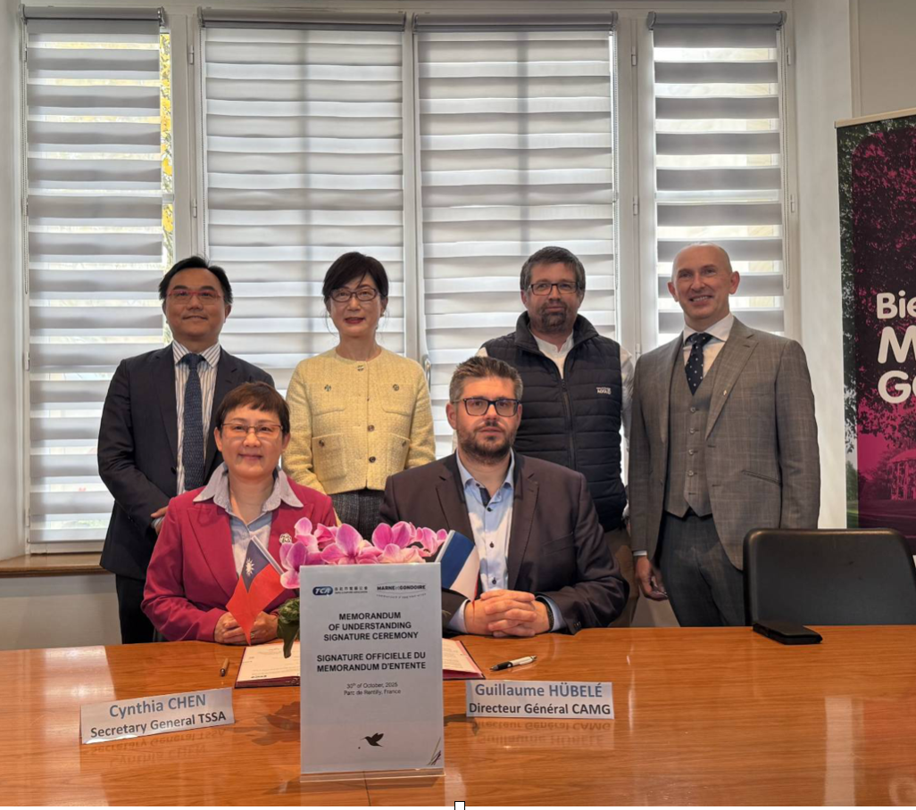 Le 30 octobre 2025, l’Ambassadrice Pei-Chih HAO a assisté à la signature d’un MOU entre l’Alliance des Villes Intelligentes de Taïwan et la Communauté d’Agglomération Marne et Gondoire (CAMG). Mme Cynthia CHEN, Secrétaire générale de l’Alliance, et M. Guillaume HUBELE, Directeur général de la CAMG, ont officialisé ce partenariat, posant une base solide pour le développement futur des échanges et projets en villes intelligentes.