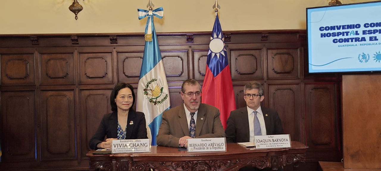 El convenio del “Proyecto de Construcción del Hospital Especializado contra el Cáncer”, firmado hoy en el Palacio Nacional de la Cultura por la embajadora Vivia Chang y el ministro Joaquín Barnoya del Ministerio de Salud Pública y Asistencia Social, con el testimonio del presidente de la República Bernardo Arévalo de León, reafirma el firme compromiso de Taiwán de colaborar estrechamente con el Gobierno de Guatemala en favor del bienestar del pueblo guatemalteco.