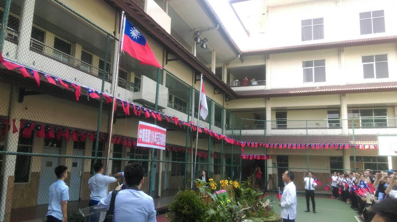 Kepala TETO John C. Cheng pada tanggal 1 Januari2017,memimpin pengibaran upacara bendera di Jakarta Taipei School