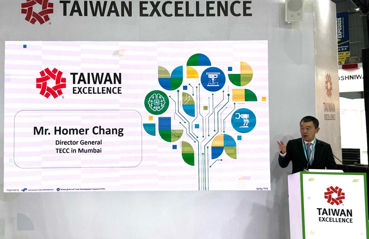 The India Automation Expo 2025 was held from August 11 to 14 this year at the Bombay Exhibition Center in Mumbai. Director General Homer Chang attended the Taiwan Excellence Pavilion press conference on August 11 and delivered a speech. This year, Taiwan Excellence featured the theme “Green Vision, Smart Manufacturing.” More than 20 Taiwanese companies showcased over 40 products, including industrial robots, automation components, metal processing, industrial computers, and AIoT solutions, attracting over a hundred Indian enterprises to the pavilion. Thie event also showcased the resilience of SMEs and the viability of Taiwan’s Economic and Trade Diplomacy.