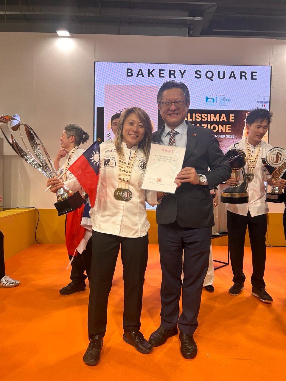 台灣代表隊2025年10月13日至18日參加在義大利舉行享譽全球的世界盃聖誕麵包大賽「PanettoneWorld Championship 2025」,在這場匯聚世界頂尖烘焙師傅的國際競技中,台灣隊以精湛手藝脫穎而出,擊敗多國專業團隊,勇奪總冠軍佳績,同時榮獲「義大利經典之作獎」、「巧克力口味作品獎」第一名,為台灣烘焙界增添國際榮耀。