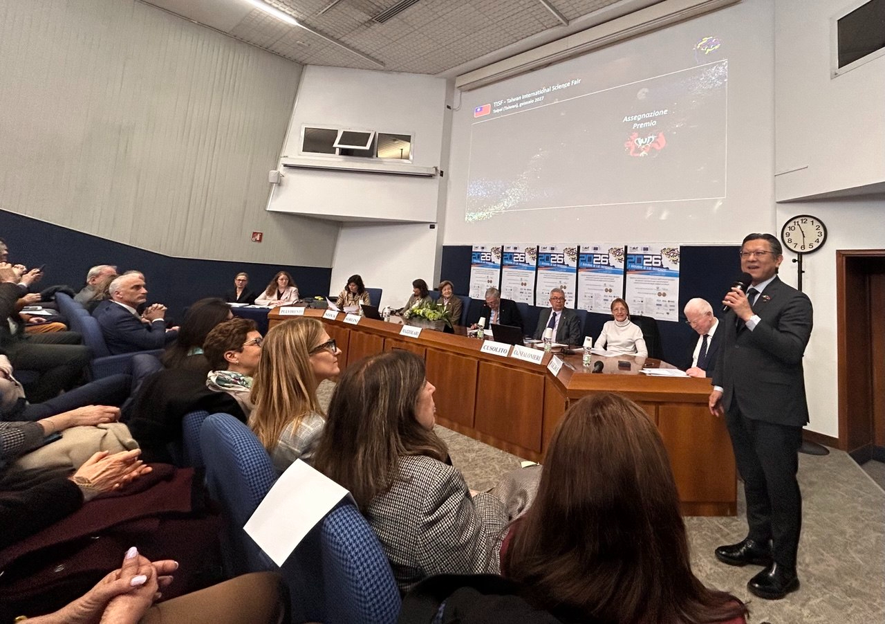 駐米蘭辦事處林處長讚南代表出席頒獎典禮,並於第一時間轉致總統、副總統賀電,代表政府向三位獲獎學生表達誠摯祝賀,肯定其以專業實力與研究精神,在國際科學競賽中展現台灣青年學子的卓越實力與國際競爭力。