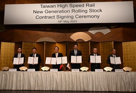 台北駐日經濟文化代表處代表謝長廷於5月18日應邀出席見證在東京舉行的台灣高鐵採購新列車簽約儀式。謝代表致詞時表示,臺灣與日本合力讓2007年通車的台灣高鐵成為縱貫臺灣所不可或缺的重要交通工具,這次新列車採購,除代表臺灣企業與日本企業繼續合作外,更是象徵臺日間的情誼,期盼新列車能早日在台灣高鐵的軌道上奔馳。