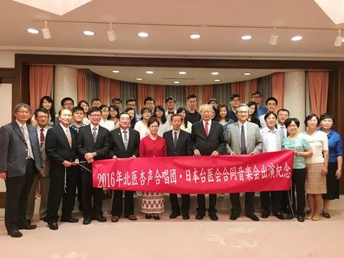 台北醫學大學〈北醫〉張文昌理事長與北醫杏聲合唱團成員、北醫日本校友會廣內世英會長以及「台醫會‧北醫杏聲合同音樂會」張武彥執行委員長等一行8月26日晚上拜會駐日代表謝長廷。謝代表對一行來訪表達歡迎之意,也預祝合唱團8月28日的演出成功。