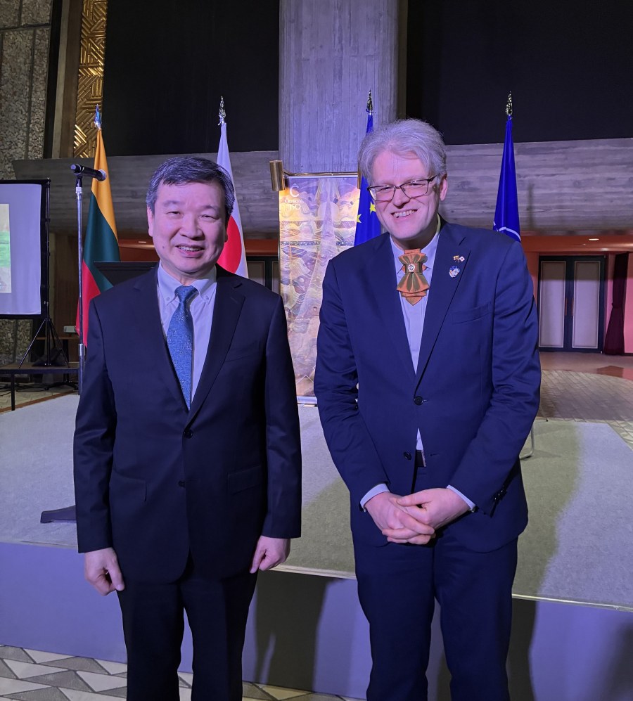 李逸洋・駐日代表は3月26日、駐日リトアニア大使館が主催するリトアニア独立記念日レセプションに出席し、李代表はオーレリウス・ジーカス駐日リトアニア大使と挨拶を交わした。