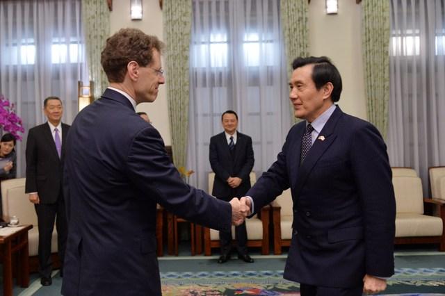馬英九総統(右)は16日午後、米国の非政府組織、「フリーダムハウス」のLagon会長(左)と会見した。「フリーダムハウス」は国際的な人権団体で、各国の自由と民主主義を監視している