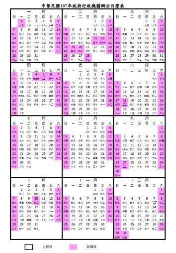 写真提供:行政院人事行政総処サイトより 行政院人事行政総処が2018年の政府行政機関出勤スケジュール表を決定。2018年の連休は6回。休日は合計115日となる。