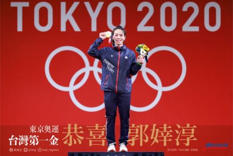 写真提供:蔡英文総統フェイスブック 「挙重女神(=重量挙げの女神)」と呼ばれる郭婞淳選手が27日、東京オリンピックの重量挙げ女子59キロ級で金メダル獲得の快挙を成し遂げた。台湾にとって今大会初の金メダルとなる。
