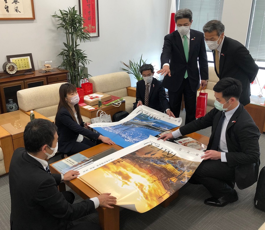 (左至右)明神主任、森田課長、夏野市長、向處長、陳國際交流員、黑川係長