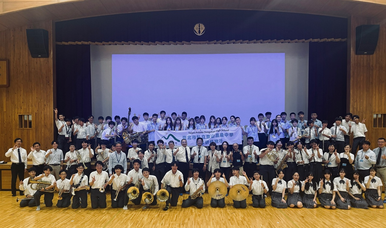 台北市私立東山高校は8月25日に東山高校(京都)を訪問し、両校は学生による英語での学校紹介プレゼンテーションや、音楽クラスと吹奏楽部の生徒による素晴らしい演奏を披露し、盛況となりました。