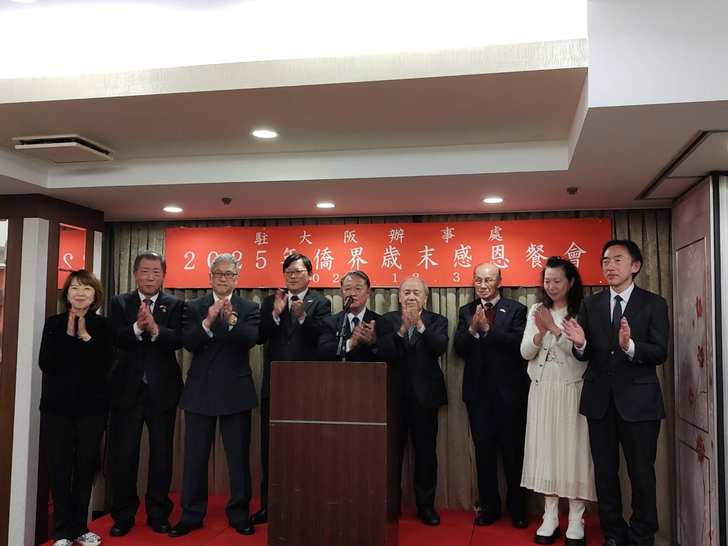 駐大阪弁事処は、2025年(民国114年)12月3日夜、「2025年僑界歳末感恩餐会」を開催し、洪処長が主催を務めた。当日は、関西地区の僑務栄誉職員、僑界リーダー、華人団体代表および事務所職員ら約80名が出席した。