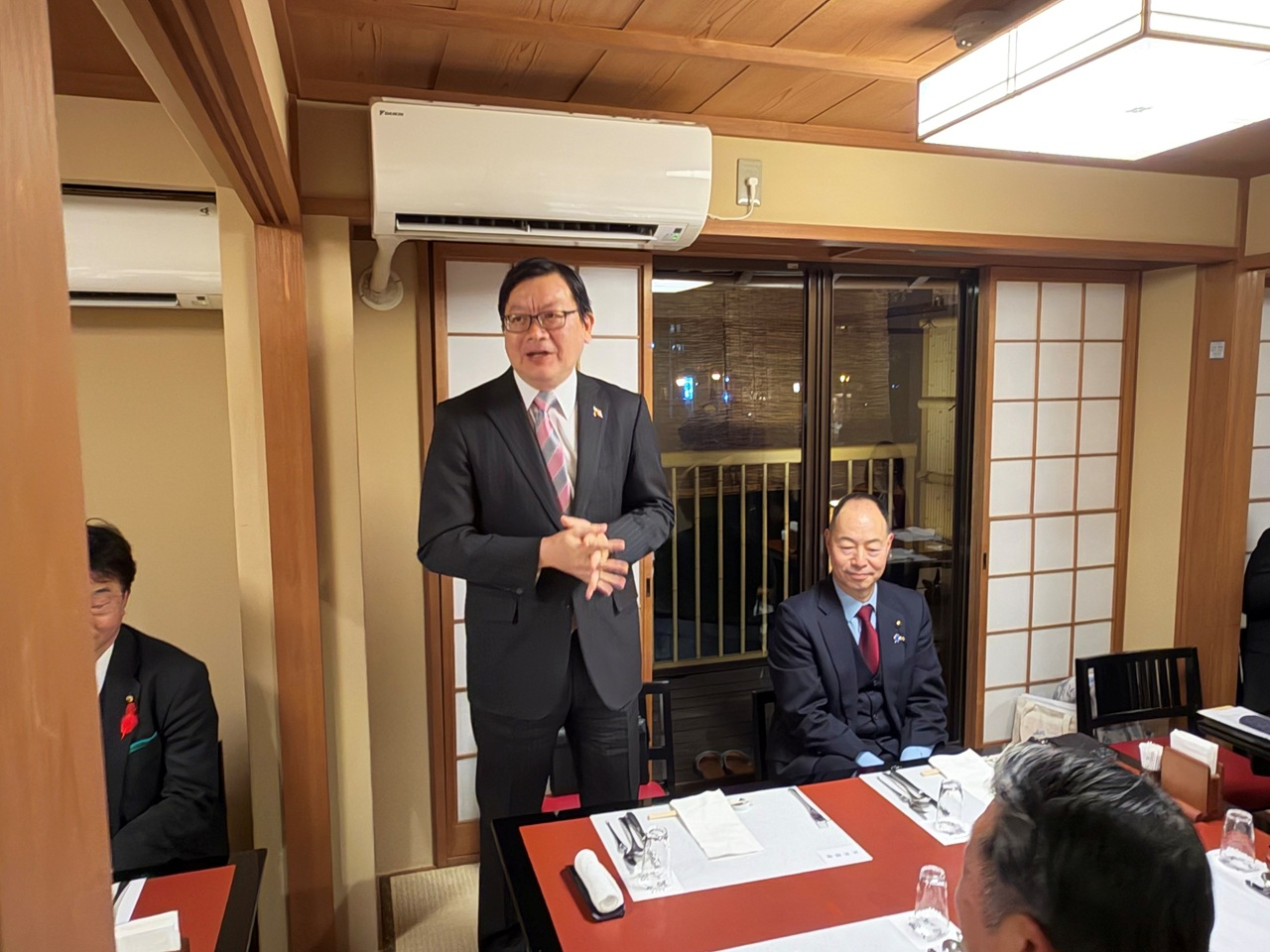 駐大阪弁事処の洪英傑処長は、2025年12月4日、職員とともに京都華僑総会が主催する「2025年忘年会」に出席した。本会は魏禧之会長の主催のもと開催され、同総会の幹部、理事・監事のほか、京都府議会日台親善議員懇話会、京都市会日台親善議員連盟の会長および幹部など、台湾友好の政界関係者を含む約20名余りが来賓として参加した。