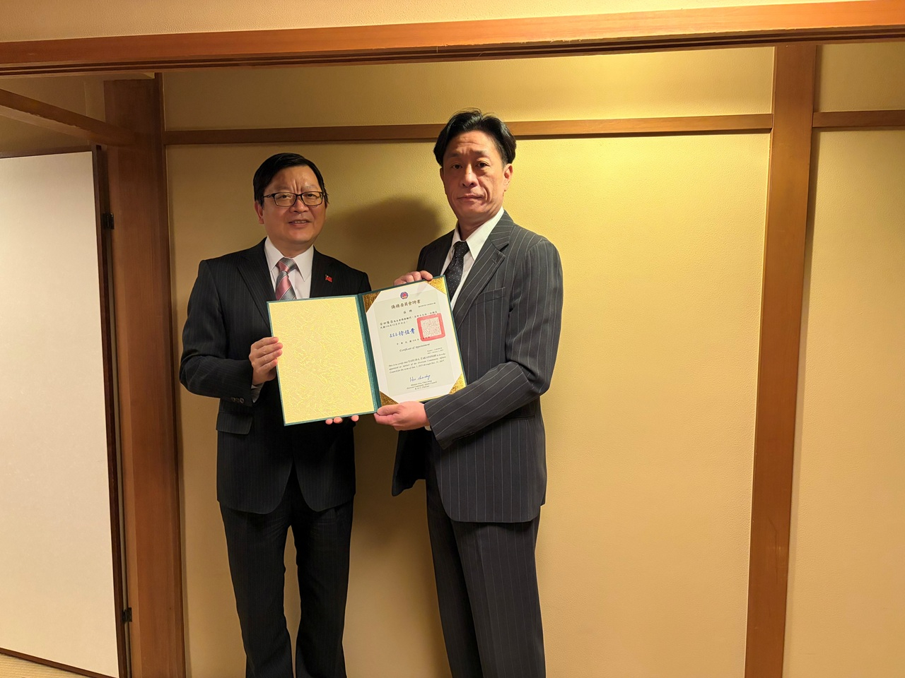 さらに、洪処長は僑務委員会を代表し、安田隆昌副会長および大嶋理絵副会長の両名に名誉職の委嘱状を授与した。両氏が長年にわたり僑務に尽力し、京都地域における僑界の発展と交流促進に多大な貢献を果たしてきた功績を称えた。