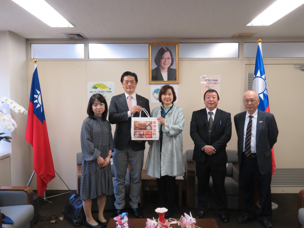 張處長於3月30日接見東伊豆町岩井茂樹町長(前國土交通副大臣)及熱川香蕉鱷魚動植物園神山浩子副園長。雙方就台日經貿、觀光及地方交流等廣泛交換意見。