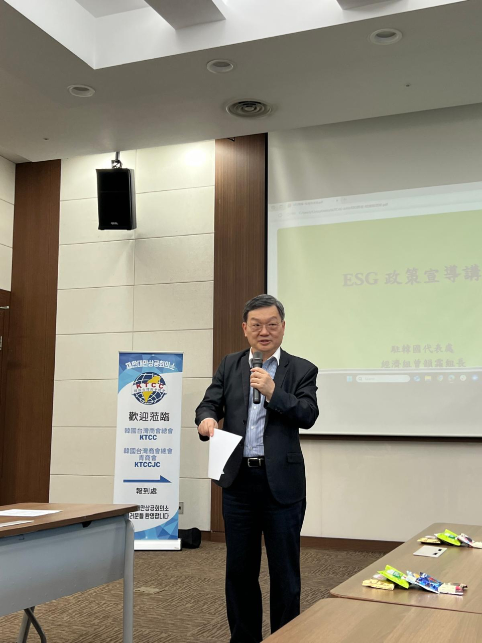 駐韓代表梁光中於6月14日(六)出席本處與韓國臺商會共同舉行的ESG、投資經貿座談會,並於開幕致詞表示,來韓赴任即將屆滿3年,親自見證到臺商會在渠任內成立並逐漸成長茁壯,臺商會至今成長到60多名會員。期待臺商會未來能有更多新的臺商加入,一起讓這個大家庭更加壯大!