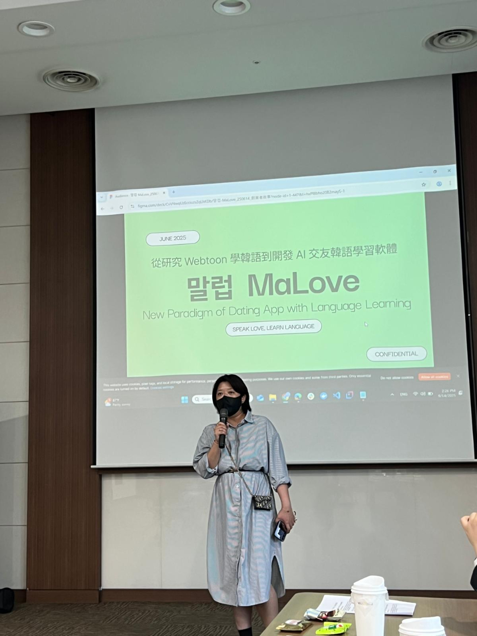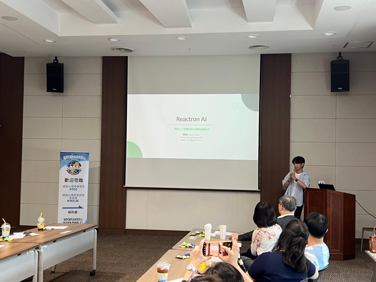 活動中,除由本處經濟組曾韻霜組長進行ESG政策宣導講座外,亦邀請2名來自臺灣的年輕創業者–MaLove創辦人盧佳君、Reactron AI創立者陳書安,分享他們如何善用AI技術推動語言學習;以及透過AI改寫化學的永續未來。梁代表稱讚年輕世代勇於創新、敢於突破,並期許他們為韓國產業界創造新的視野與可能。