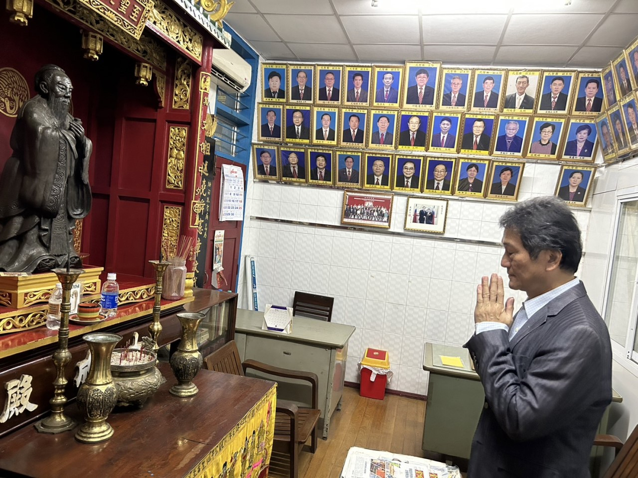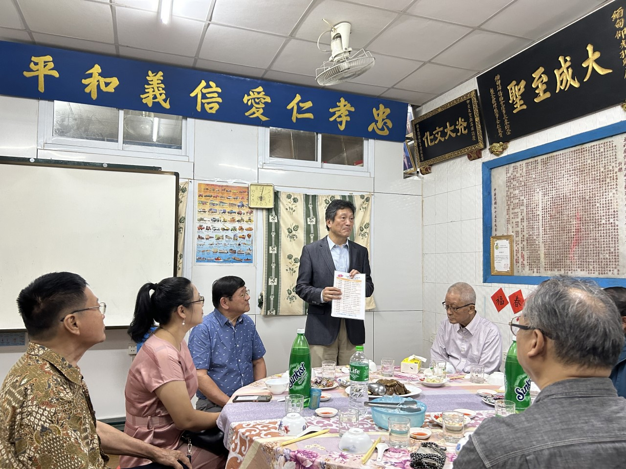 邱龍廈董事長歡迎周大使及仰光各位僑界先進蒞臨孔聖廟,並指出孔聖廟信託管理委員會自2017年起與緬甸留台同學總會共同合作創立孔聖國際學校,秉持傳承中華文化,在仰光教育華人子弟,未來將秉持作育英才,培養華人子弟的宗旨繼續全力興學。