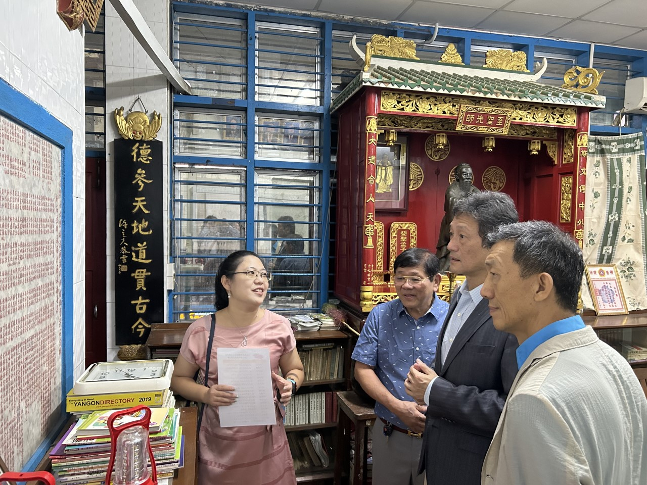 7月15日周中興大使偕僑務組長林冠宏,受邀參訪仰光孔聖廟及孔聖國際學校,孔聖廟主任及學校董事長邱龍廈全程接待。緬華自由青年總社監事長王成志、緬華國術社社長張建武、緬甸仰光雲南會館名譽會長江松靖、緬甸臺商總會名譽總會長何廷貴、緬甸留臺同學總會名譽會長尹開泰等僑界領袖在場陪同。周大使除聆聽孔聖廟及孔聖國際學校的沿革及辦學成果外,並向至聖先師孔子像行禮致敬。