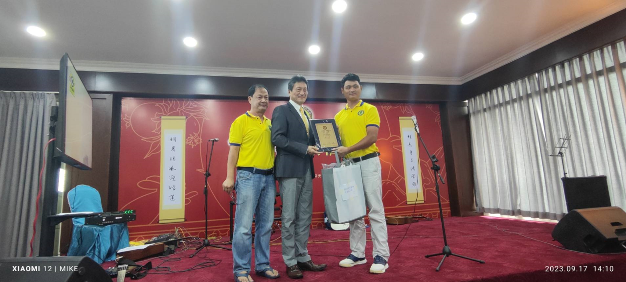 周大使參加緬甸留台同學總會舉辦「歡慶112年中秋」活動時頒獎。