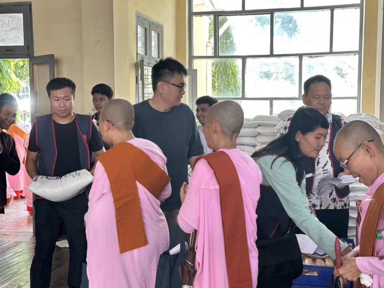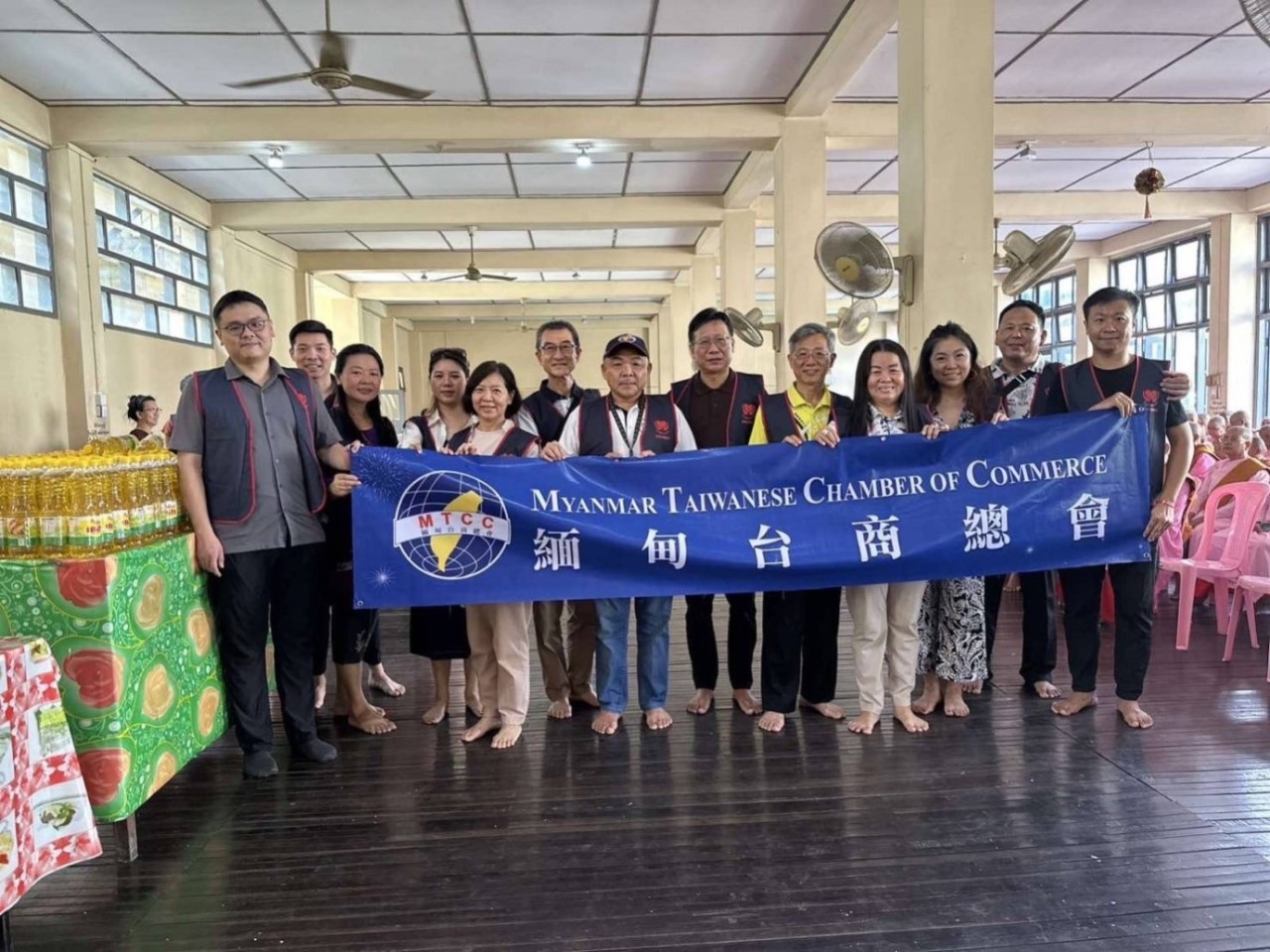 溫斯郎總會長致詞表示,很高興大家齊聚一堂迎來一年一度的中秋佳節,在這月圓人團圓佳節之際,緬甸臺商總會感念緬甸這塊土地的滋養,今天下午辦理愛心活動,與各位臺商朋友供養500位女性出家眾。此外,支持政府僑教政策今年提供全新筆記型電腦,透過駐處僑務組安排,支援緬北僑校資訊設備。