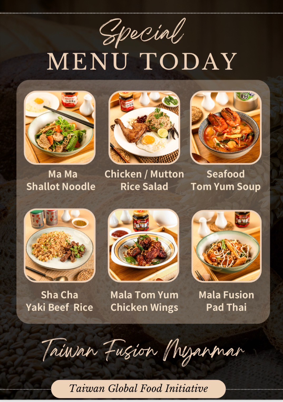 Asia Golden Lion與De Mart響應我經濟部國際貿易署及對外貿易發展協會「臺灣食品全球Go」專案,於10月6-8日在緬甸舉辦系列台灣美食推廣活動,推出臺灣牛頭牌醬料製作之各式料理的品試會,將先後邀請緬甸各界及僑界共賞。活動於10月6日邀請代表處周中興大使及駐處同仁與會同歡。梁總經理分享,在De Mart的多年推廣下,許多緬甸知名餐飲及火鍋店均已採用該公司獨家代理的台灣牛頭牌醬料,今年特以「Taiwan Fusion Myanmar」為題與仰光The Brew餐廳合作,將台式醬料融入緬甸菜餚,推出多款無國界融合料理 (Fusion Food),例如將台式紅蔥醬置入緬式傳統的豆拌飯中,使這道國民美食增添了更多元的風味及層次感。另外包括麻辣炒麵、沙茶醬燒牛肉飯及台式沙茶Pizza等,都為緬甸饕客帶來了別具創意的新體驗。