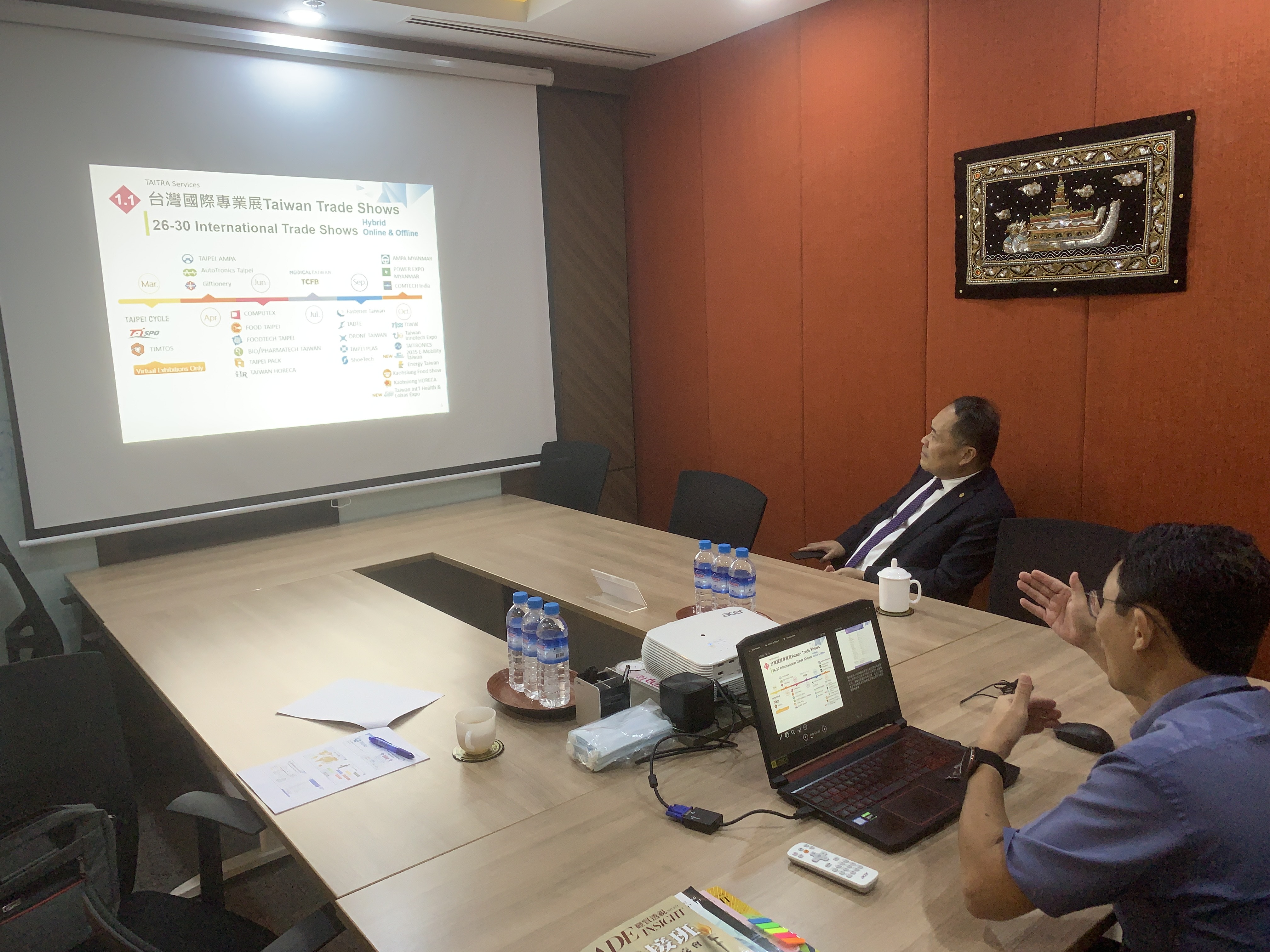 台貿中心秦淮峯主任於簡報中指出,該中心主要工作聚焦於推動台灣國際專業展、貿易拓銷團、採購洽談會、公協會關係維護、開發潛在商機、推廣台灣精品及市場調查與商情蒐集等七大方向。近年因應疫情及政局影響,中心積極發展線上與實體並行之混合展覽模式,透過數位平台與線上洽談機制,協助廠商與緬甸買主媒合,推動台灣品牌及產品進入緬甸市場。另每年均有多位緬甸買主赴台採購,並籌組我赴緬、越、印尼等地之貿易拓銷團,積極開發區域市場。中心並與緬甸工商總會、工業協會及多國商會維持密切聯繫,推動「台灣精品」海外宣傳與潛在商機開發,促成多項產業合作案,持續深化雙邊產業鏈連結。