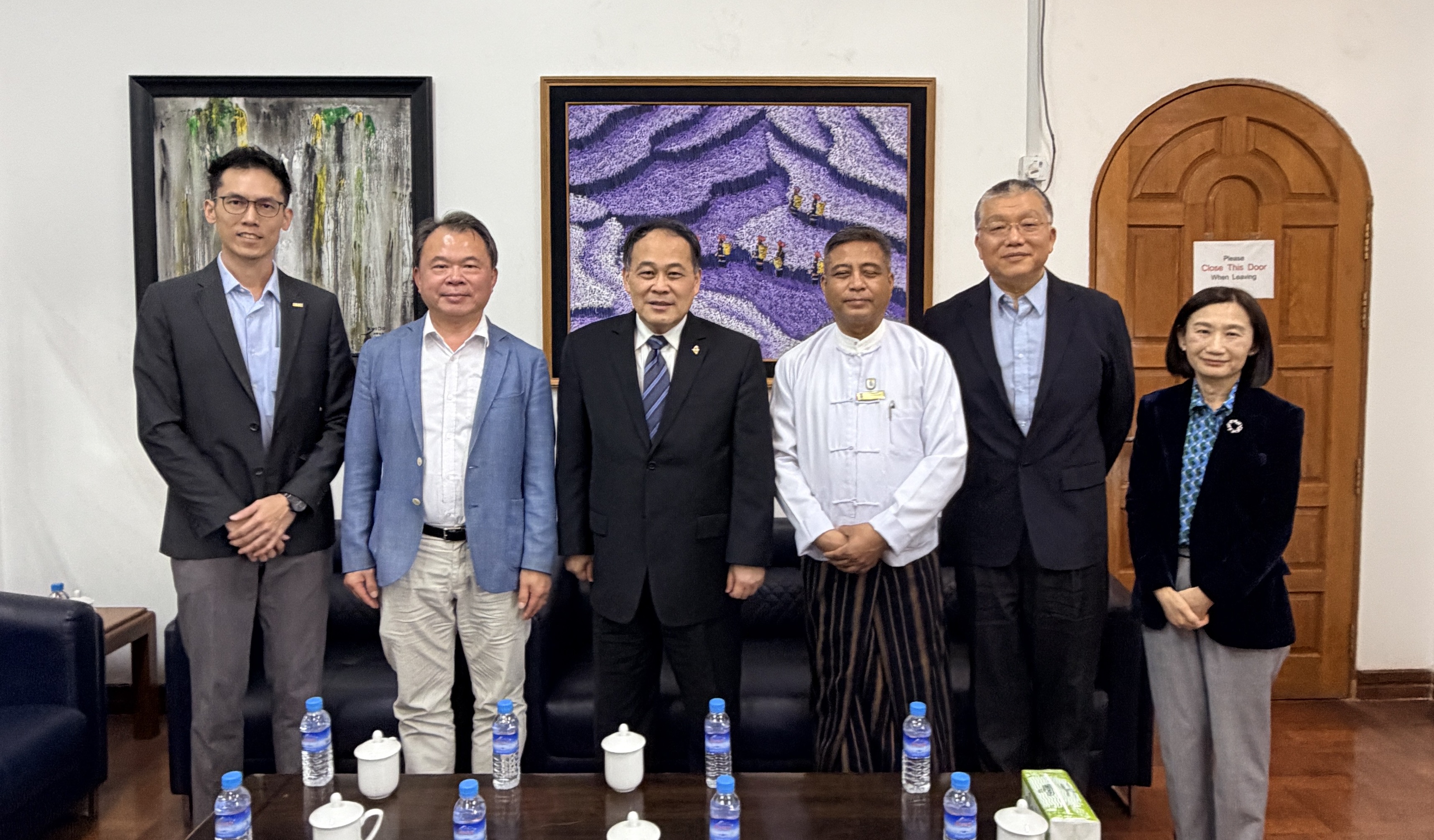 黃敏境代表(左3)、呂良正理事長(左2)、Tin Latt理事長(右3)、趙汝康董事長(右2)、劉曼君執行長(右1)及簡伯因業務經理(左1)等合影