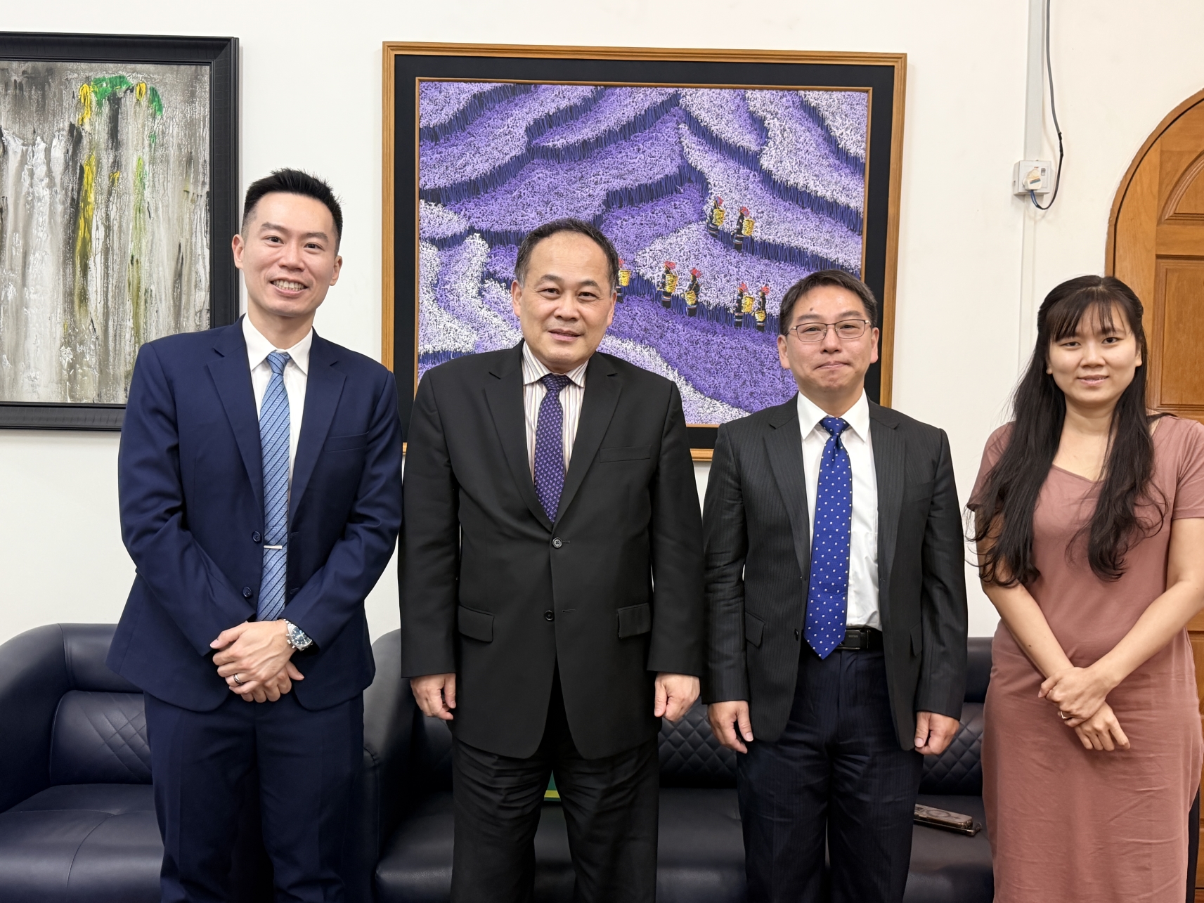 一銀行仰光代表辦事處新任黃慶福首席代表與即將就任第一銀行柬埔寨金邊分行旗下登高支行的陳宥丞經理,於本(2026)年3月19日拜會駐緬甸代表處黃敏境代表,就緬甸政經現況等議題交換意見。