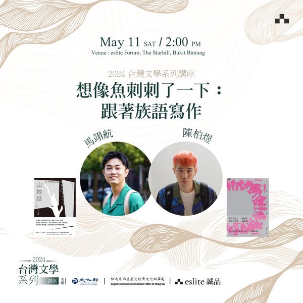 “ruma’”在卑南語的意思是「家」, “mata”是「眼睛」,馬來西亞的朋友們是不是覺得很熟悉?「台灣文學系列講座」第2場將於本週六 (5月11日)於誠品吉隆坡登場,作家馬翊航將以卑南語一個發音部位的引導方式「想像魚刺刺了一下」為講題,談族語寫作對他的影響。