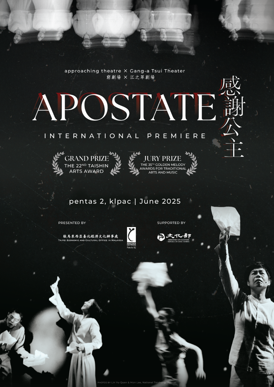 本處文化組第三度攜手吉隆坡表演藝術中心(Kuala Lumpur Performing Arts Centre),將於6月20日至22日推出由窮劇場與江之翠劇場聯合製作的劇作《感謝公主》,該劇2023年在臺首演,別具一格的敘事手法及凝練風格廣獲好評,首次海外演出選擇回到導演高俊耀的家鄉,並已獲大馬重要中、英媒體大幅報導介紹,備受當地劇迷期待。