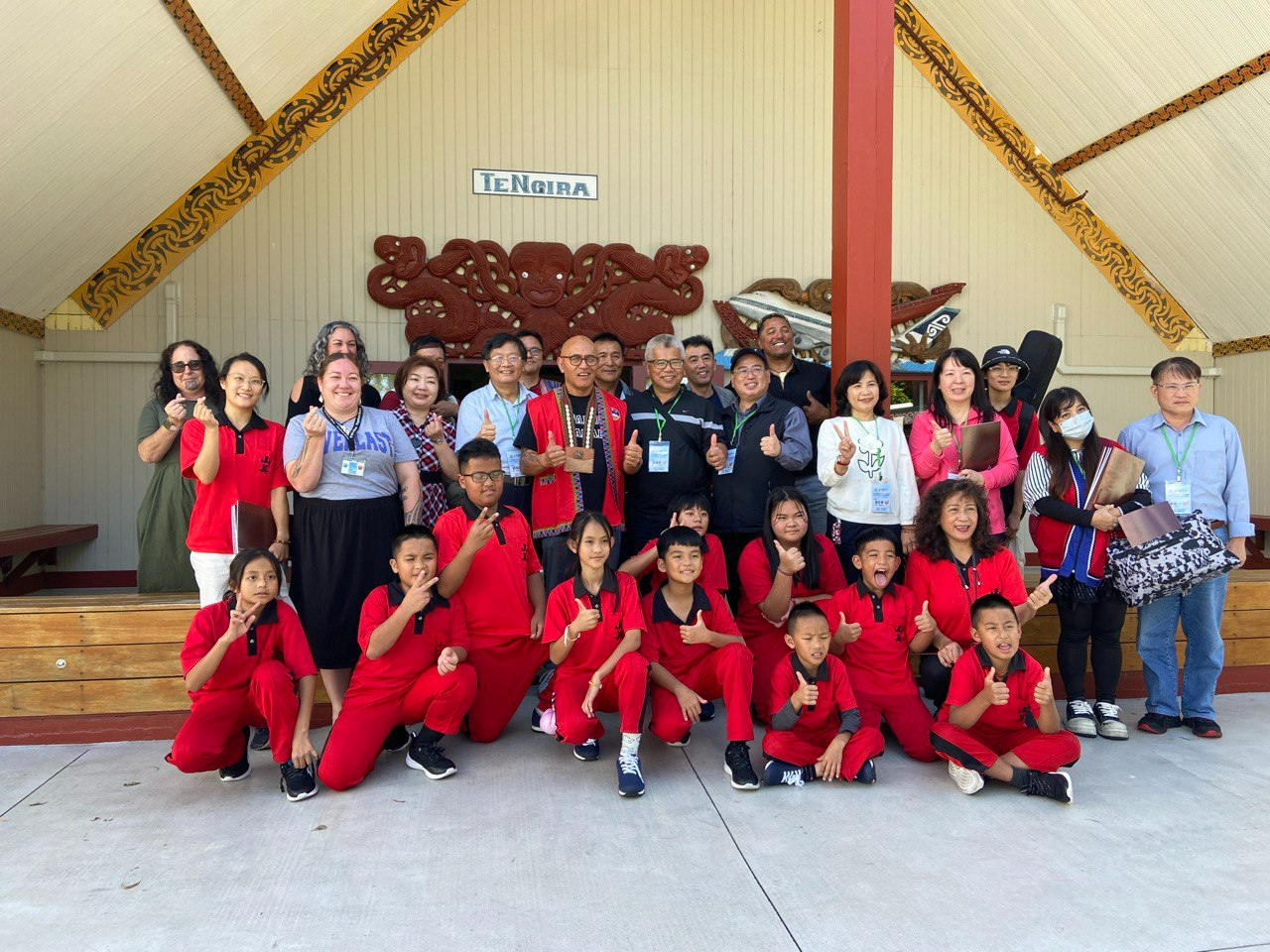 On December 6, TECO in Auckland accompanied Deputy Magistrate Liu Pei-Dong of Chiayi County on a visit to the Papakura Māori Marae, where the tribe's executive officer, Tony Kake, welcomed the delegation with a traditional Māori ceremony. During this trip, Deputy Magistrate Liu led a delegation that included officials from Chiayi County Government and students from Shanmei Elementary School, visiting Rotorua and Taupo. The delegation met with Rotorua Mayor Tania Tapsell, toured the Te Arawa Whānau Ora Health Support Services Center and Rotorua Primary School. In Taupo, they were accompanied by local councilor Anna Park and visited the Taupo Museum and Art Gallery. They also met with the staff at Te Kura Kaupapa Māori Whakarewa I te Reo Ki Tuwharetoa, a Māori school in Taupo, for cultural and educational exchanges, seeking to expand collaboration in indigenous affairs, health, and international education between Chiayi County and local governments in New Zealand.