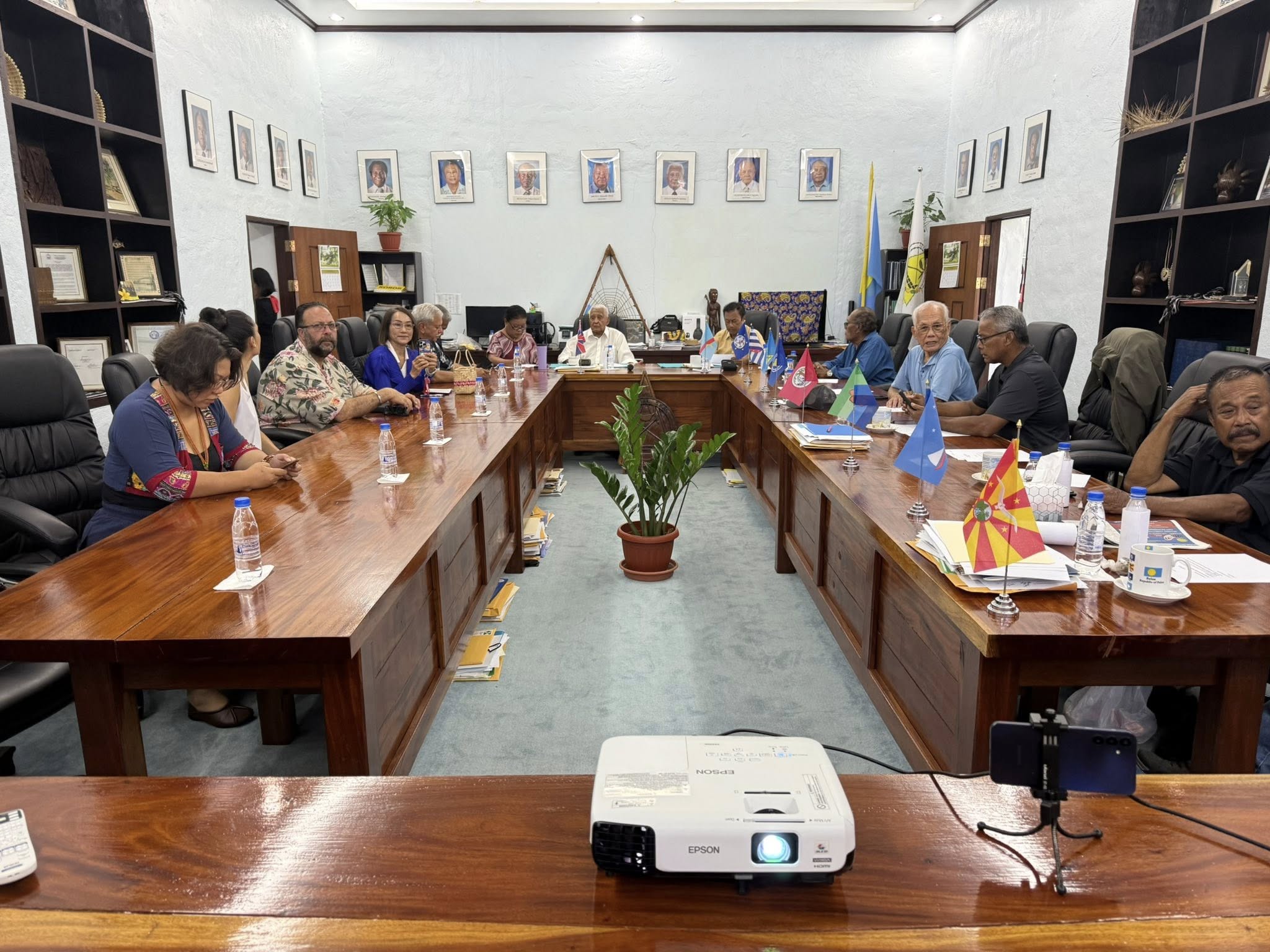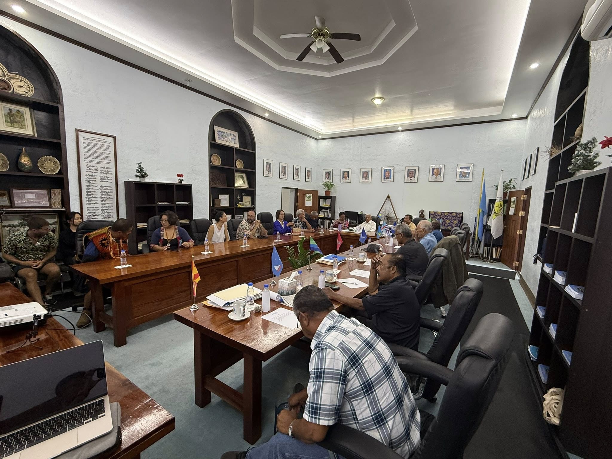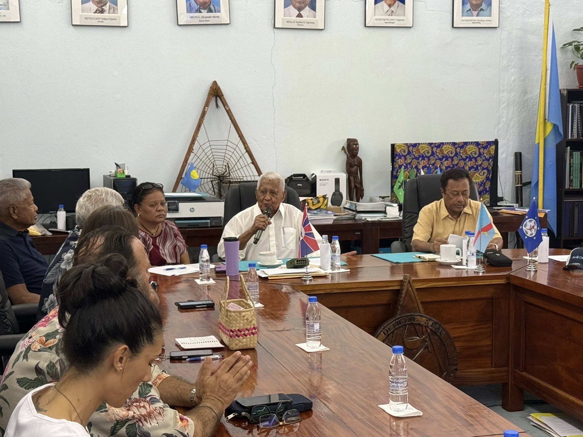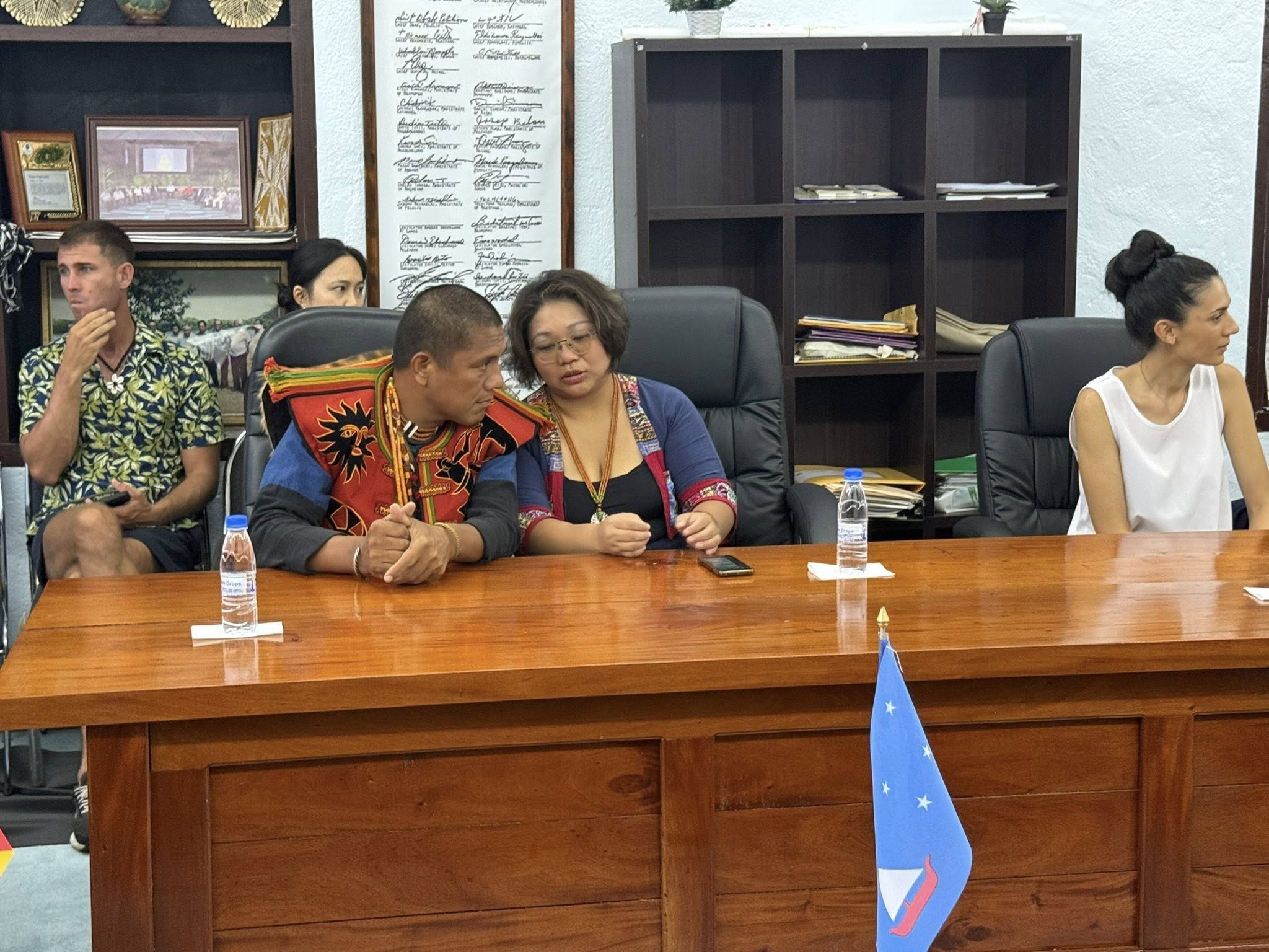 ? 2025年9月12日,駐帛琉大使黎倩儀榮幸陪同排灣族獵人暨文化傳承者 亞榮隆·撒可努 (Sakinu) 及渠女兒 Selep,拜會帛琉酋長會議與密克羅尼西亞航海協會,共同分享 無私分享號 (Alingano Maisu) 今年五月航抵台灣蘭嶼與台東的動人經歷。