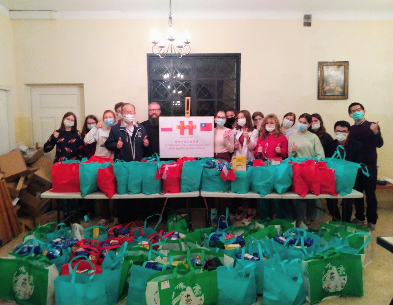 Pomimo obecnej sytuacji pandemicznej, Biuro Przedstawicielskie Tajpej, przestrzegając obowiązujących zasad reżimu sanitarnego, zdołało dostarczyć potrzebującym paczki żywnościowe w nadziei na ogrzanie ich serc w ten zimny jesienny wieczór. Biuro przygotowało również poczęstunek w postaci tajwańskich wypieków, takich jak ciastka ananasowe i sezamowe, oraz napojów Bubble Tea dla wszystkich wolontariuszy, aby wspólnie uczcić 110. rocznicę Święta Narodowego.