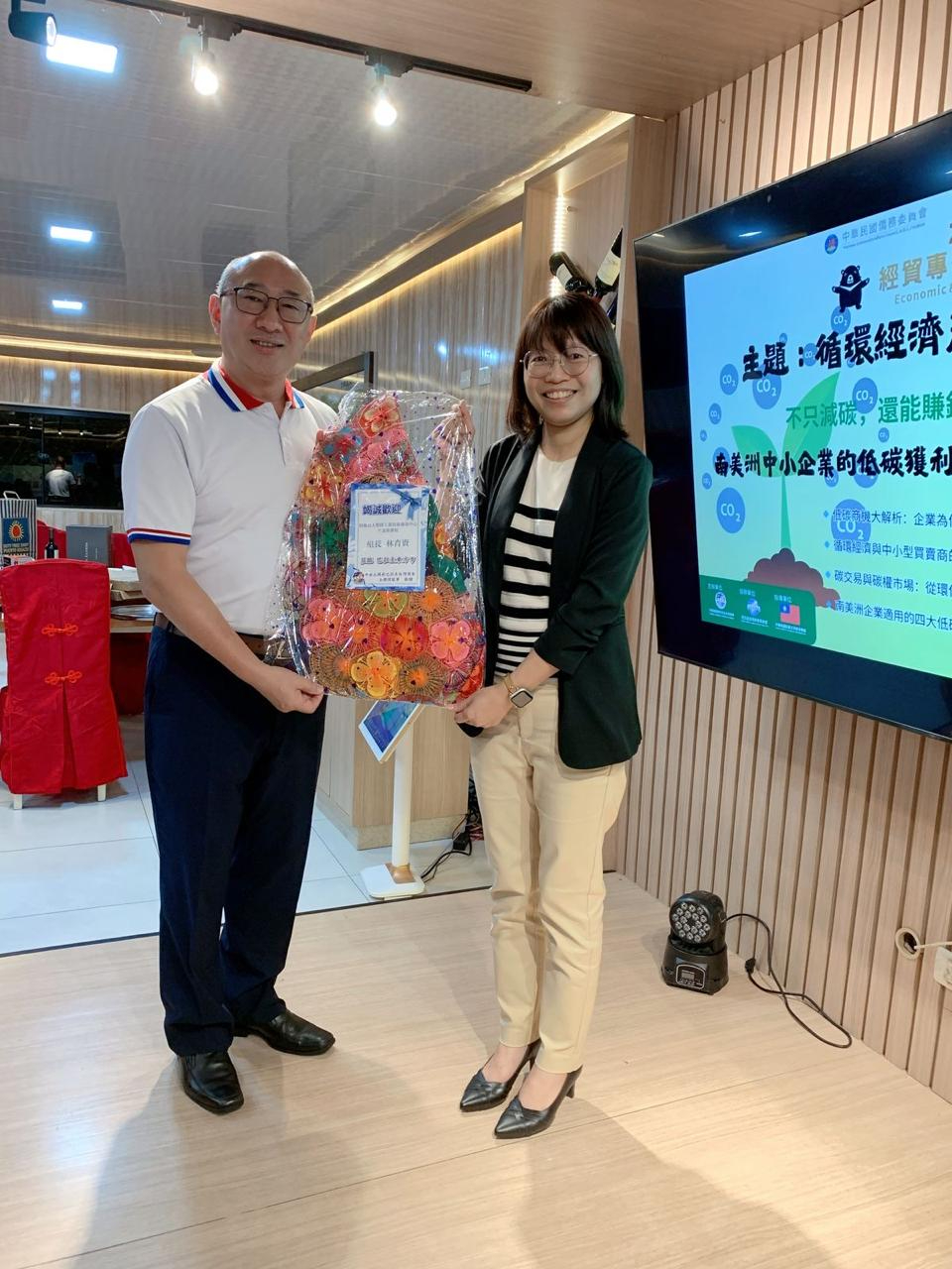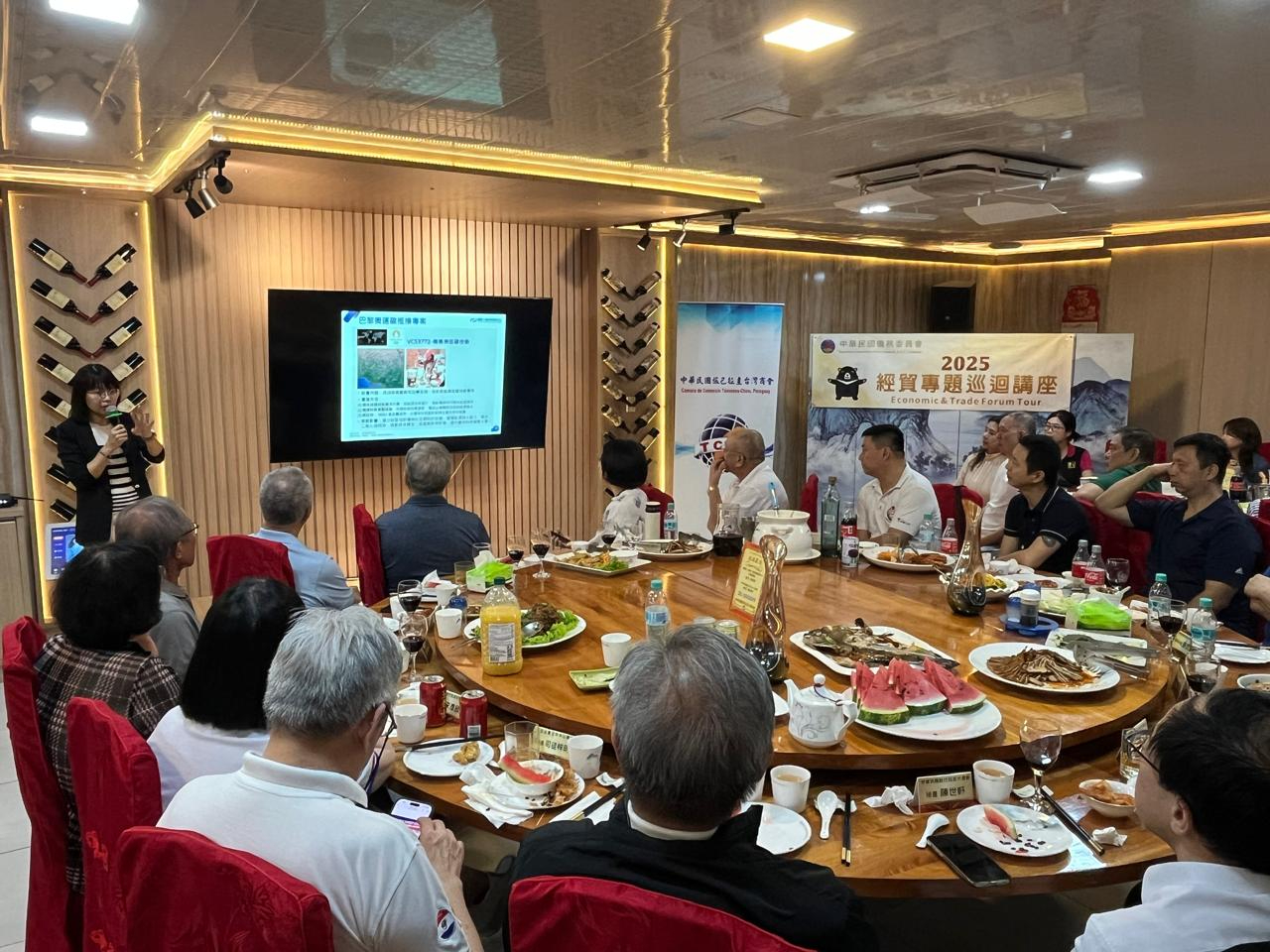 陳總領事出席中華民國旅巴拉圭臺灣商會承辦的「 2025年僑務委員會經貿專題巡迴講座巴拉圭場次 」,由臺灣財團法人塑膠工業技術發展中心企劃推廣組組長 林育資 特別前來進行演講分享,林組長以「循環經濟產業趨勢-不只減碳,還能賺錢!南美洲中小企業的低碳獲利策略 」為題,深入淺出的講述新型循環經濟產業趨勢,並結合中南美洲的相關案例,讓與會的臺商僑胞吸收產業商情新知。 陳總領事表示,節能減碳已成為國際間最受關注的課題,淨零排放也被政府視為政策目標,台灣政府不只協助國內企業升級轉型,也透過僑委會希望提升海外台商的企業競爭力,此次經貿講座首次到中南美洲巡迴就選定巴拉圭東方市,可見東方市台商的實力及發展前景,期待每位台商都收穫滿滿。