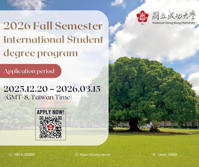 The National Cheng Kung University (NCKU) 2026 Fall Semester Admission for International Students is now open for application. If you are interested in pursuing further study with NCKU, please refer to the following details: