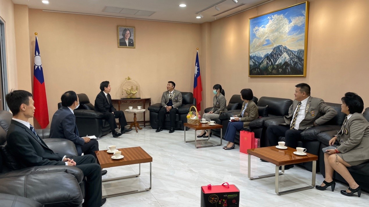 曼谷大玲昌(旅泰台商)獅子會蔡鳳柏會長率該會幹部,與泰國台灣商會聯合總會郭修敏總會長於今(24)日拜會駐泰國代表處莊碩漢大使。